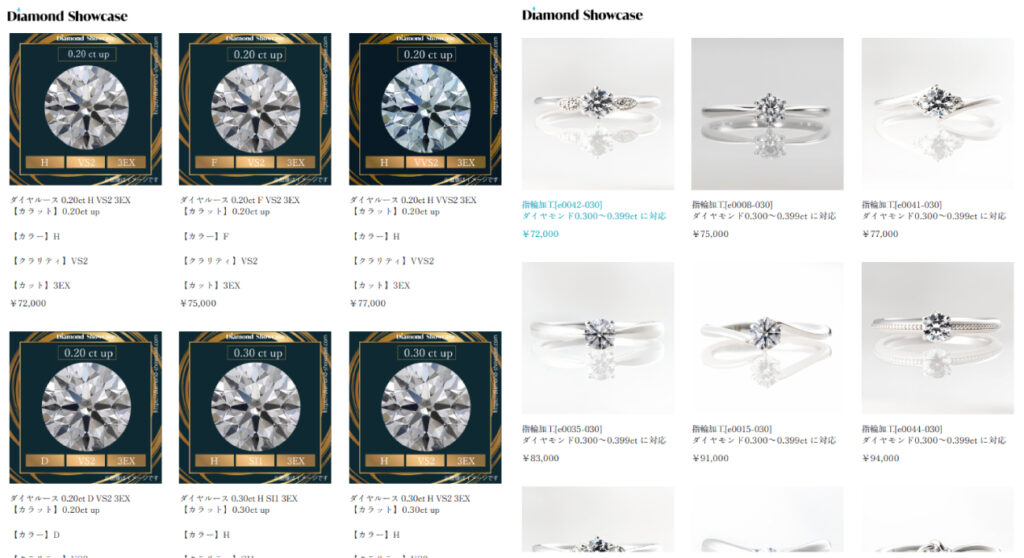 Diamond Showcaseではオンラインでダイヤルースを購入し、あとからデザインを選んで指輪に加工することができます。
